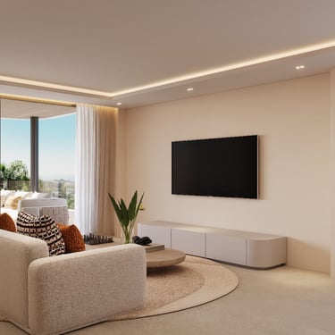 Los grandes ventanales de suelo a techo maximizan la entrada de luz natural y conectan directamente con la amplia terraza de 36 m², perfecta para disfrutar del clima privilegiado de la Costa del Sol durante todo el año.
