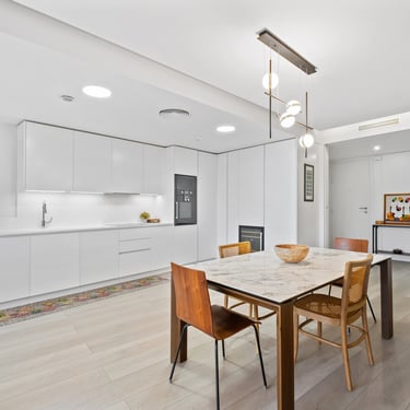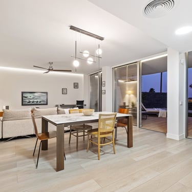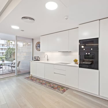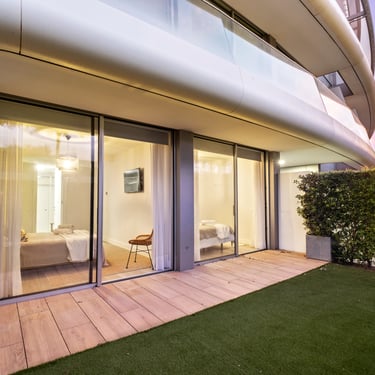 Esta propiedad destaca por su arquitectura moderna, sus amplios espacios abiertos y su conexión directa con la naturaleza. Con 121 m² construidos, el apartamento ofrece 2 dormitorios y 2 baños (uno en suite), un amplio salón-comedor con cocina abierta completamente equipada con electrodomésticos Gaggenau y grandes ventanales que se abren a una terraza de 35 m² y un jardín privado de 32 m².