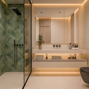 Dormitorio principal de 28 m² con baño en suite y vestidor, concebido como una auténtica suite privada.