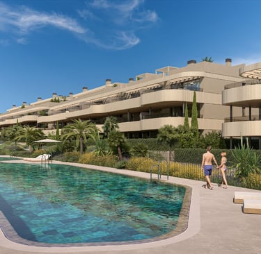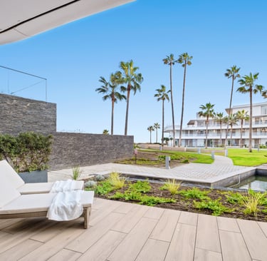 Bajo de lujo con 2 dormitorios y jardín en The Edge Estepona | Primera línea de playa y vistas al mar