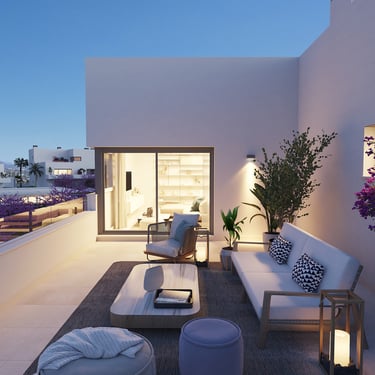 Dispone de aire acondicionado y calefacción en todas las estancias, armarios empotrados y una elegante cocina americana completamente equipada. Destaca su espectacular jardín privado de 22 m² y una amplia terraza de 43 m² con vistas despejadas, ideales para disfrutar del clima privilegiado de la Costa del Sol.